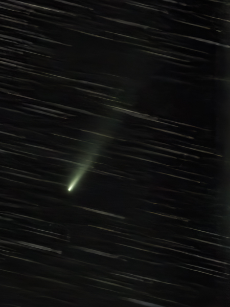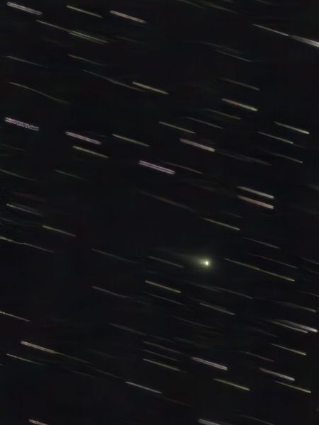 Tussen de wolken door heb ik toch nog even een poging gedaan om komeet C/2025 K1 (ATLAS) vast te leggen. Op dit moment schuift hij door het sterrenbeeld Camelopardalis (Giraffe), en met een helderheid van magnitude 11,1 is het het niet echt een helder object. Deze komeet is een nieuwkomer: voor het eerst gezien in mei 2025 en afkomstig uit de Oortwolk. Op 8 oktober maakte hij een bijzonder nauwe passage langs de zon op slechts 49 miljoen kilometer afstand. Dat is ruim binnen de baan van Mercurius, en astronomen gingen er dan ook vanuit dat hij die dans niet zou overleven. Maar verrassend genoeg bleek hij op 18 oktober…